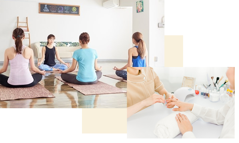 天井が高く吹き抜けタイプの明るいサロンです。ビル最上階で見晴らしもよくリラックスして心地よい空間を過ごせます。
